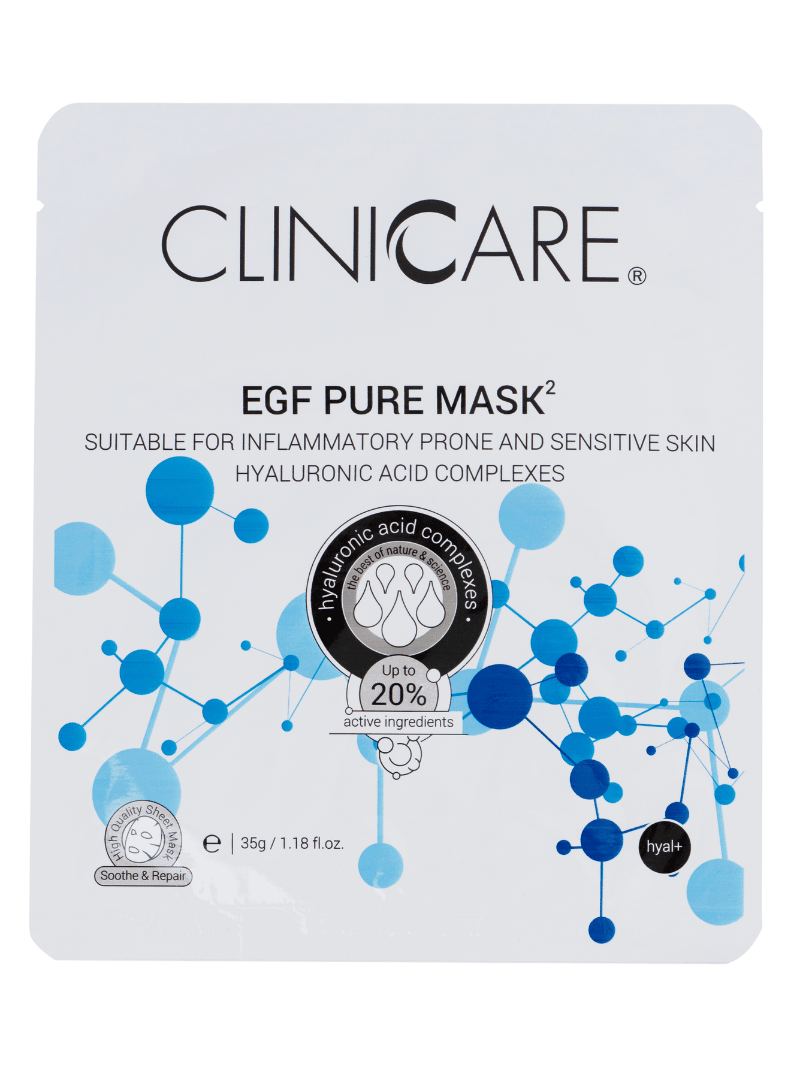 Die EGF PURE MASK² ist eine beruhigende Gesichtsmaske, die speziell entwickelt wurde, um intensiv Linderung, Hautverjüngung und Feuchtigkeit für gereizte und problematische Haut zu bieten. Die Maske liefert beruhigende Wirkstoffe direkt in die Haut.