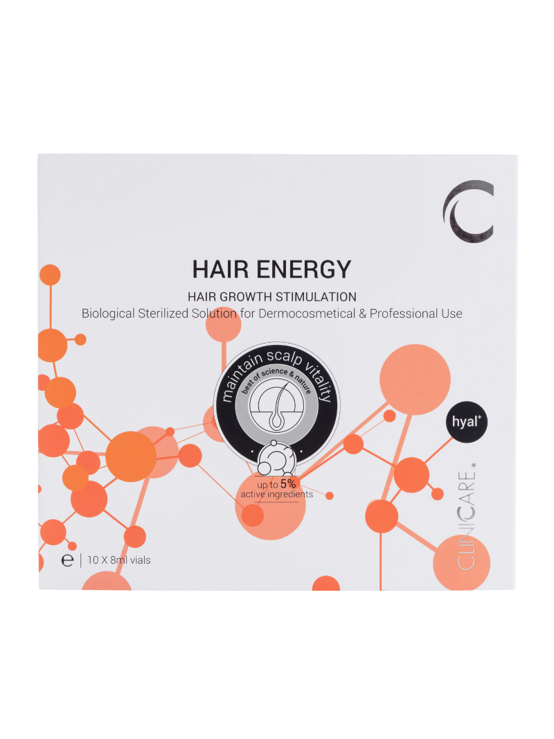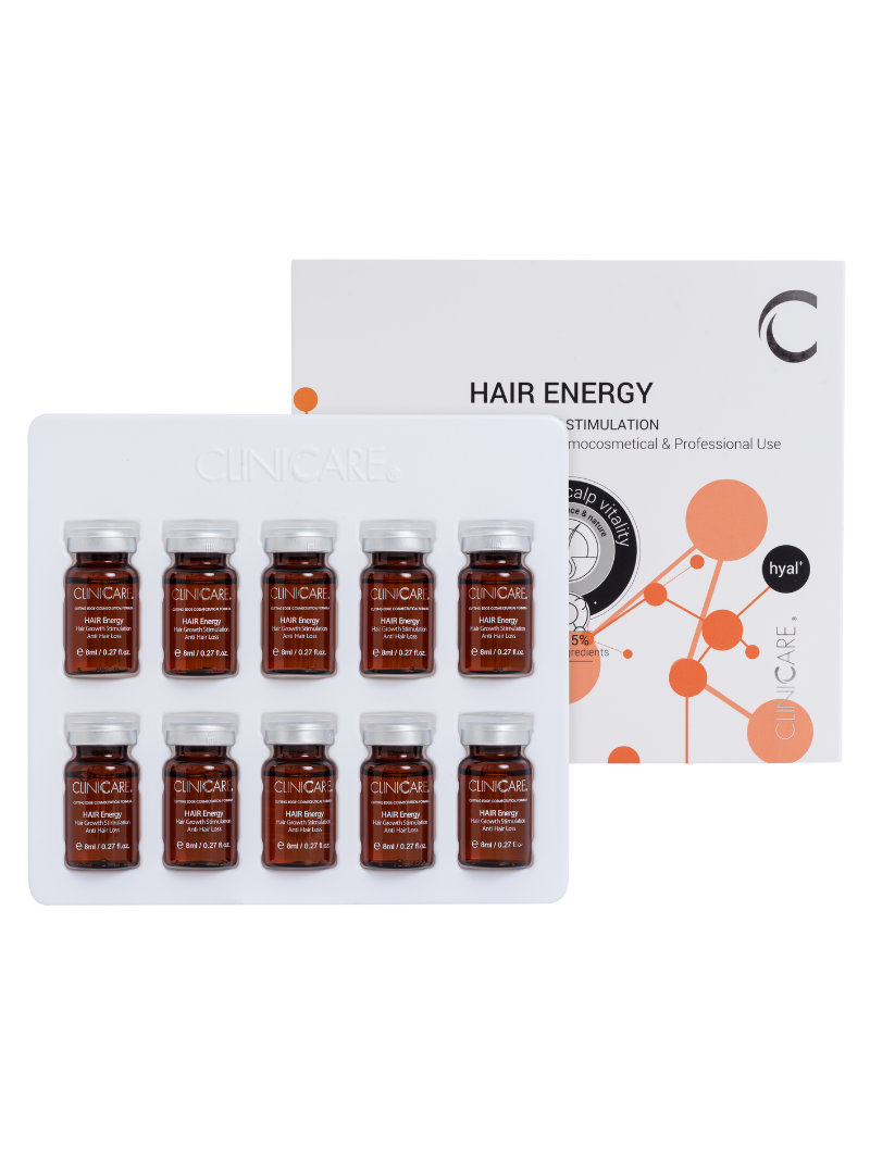 Der CLINICCARE® Hair Energy Mesotherapie-Cocktail kombiniert gezielt ausgewählte Wirkstoffe, die die Vitalität der Kopfhaut fördern und Follikeldysfunktionen gezielt entgegenwirken. Er wurde entwickelt, um Haarausfall effektiv zu reduzieren und die Haarqualität sichtbar zu verbessern.